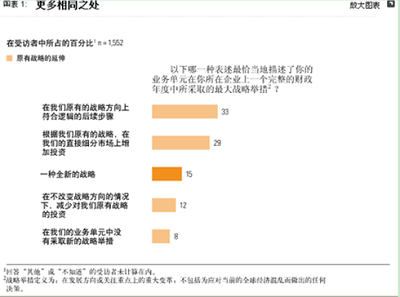在上一個財政年度,除了與眼下的全球經濟混亂有關的戰略變化以外,82%的企業的最大戰略舉措是其原有戰略的邏輯延伸(圖表1)。