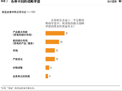 qiyekeyitongguoyuceqijingzhengduishoudezhanlvexingdongerhuodeyoushi。danshi,qiyegaibianqizhanlvedeyuanyinduozhongduoyang,youxieshiwaibuyuanyin,ruguangfandejingjibiangehuojingzhengduishoudexingdong;而er有you些xie是shi內nei部bu原yuan因yin,如ru一yi次ci戰zhan略lve規gui劃hua流liu程cheng的de結jie果guo。本ben次ci調tiao查zha向xiang世shi界jie各ge地di的de企qi業ye高gao管guan提ti出chu的de問wen題ti涉she及ji他ta們men在zai去qu年nian做zuo出chu的de戰zhan略lve選xuan擇ze,以yi及ji他ta們men的de企qi業ye由you於yu除chu應ying對dui競jing爭zheng對dui手shou的de行xing動dong以yi外wai的de任ren何he原yuan因yin而er自zi發fa采cai取qu的de一yi項xiang戰zhan略lve舉ju措cuo1其中包括:采取該舉措的動機;該舉措的目標及該舉措與以前的戰略有何不同;變革以前企業的業績;規劃和實施新舉措投入了多少時間;以及該舉措在企業的各種戰略舉措中具有多大的代表性。