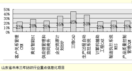 山東省紡織行業經過10多年信息化建設的積澱,信息技術已經滲透進了企業的局部或全部業務流程,企業生產經營環節各個部分的運轉、發展已經對信息化產生了不同程度的依賴。