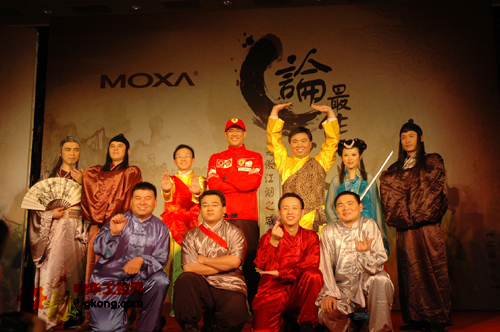 此次活動分為風起雲湧、各顯神通、萬流歸蹤、威震天下四幕, 通過屠龍刀客、大師兄、倚天女俠、無線小師弟等Moxa派的師兄弟演說,把Moxa的無線產品、嵌入式計算機、工業以太網、串口設備、多口串卡、以太網遠程I/O服務器、光電轉換器等產品的可靠性、高效性、、靈活性、、可用性、質量保證和服務支持等優勢表現得淋漓盡致。