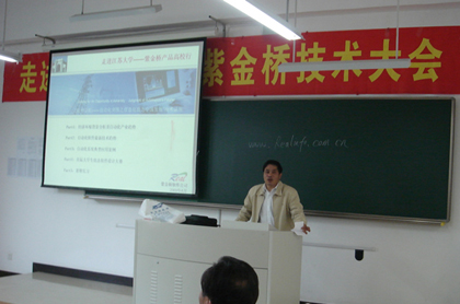 2009年4月22日(ri),紫(zi)金(jin)橋(qiao)產(chan)品(pin)高(gao)校(xiao)行(xing)走(zou)進(jin)江(jiang)南(nan)重(zhong)鎮(zhen)鎮(zhen)江(jiang)市(shi),與(yu)江(jiang)蘇(su)大(da)學(xue)在(zai)校(xiao)師(shi)生(sheng)進(jin)行(xing)了(le)自(zi)動(dong)化(hua)軟(ruan)件(jian)方(fang)麵(mian)的(de)技(ji)術(shu)交(jiao)流(liu)。江(jiang)蘇(su)大(da)學(xue)計(ji)算(suan)機(ji)學(xue)院(yuan),電(dian)氣(qi)信(xin)息(xi)工(gong)程(cheng)學(xue)院(yuan)有(you)關(guan)領(ling)導(dao)和(he)教(jiao)師(shi)參(can)與(yu)會(hui)議(yi),國(guo)內(nei)知(zhi)名(ming)信(xin)息(xi)化(hua)專(zhuan)家(jia)宴(yan)立(li)教(jiao)授(shou)主(zhu)持(chi),紫(zi)金(jin)橋(qiao)技(ji)術(shu)專(zhuan)家(jia)分(fen)別(bie)做(zuo)了(le)關(guan)於(yu)自(zi)動(dong)化(hua)軟(ruan)件(jian)的(de)相(xiang)關(guan)講(jiang)座(zuo)。