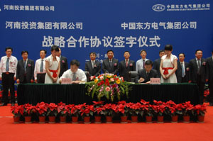 朱元巢、李興佳分別代表東方電氣集團和河南投資集團有限公司簽署了戰略合作協議。