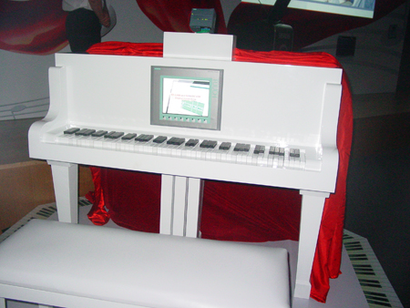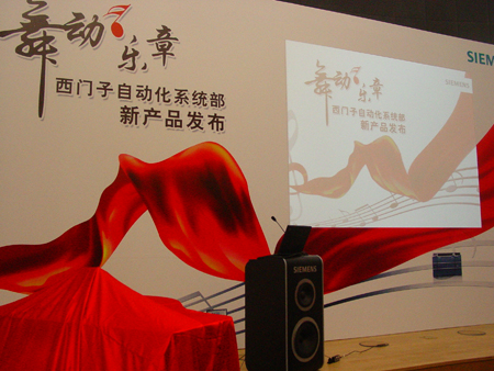 西門子中國自動化係統部總經理斐德思為S7-1200揭幕。鋼琴在S7-1200的指揮下,奏出華彩樂章,美妙的音樂下,新產品款款而出。鋼琴前方的新款HMI與S7-1200、與音樂共舞,構成和諧篇章。