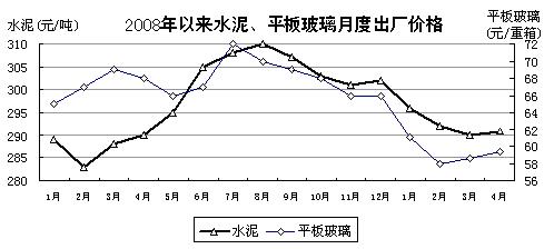 建材行業表現出良好的增長勢頭。在基礎設施建設拉動下,今年以來水泥生產一直保持較快增長。1-4月,全國水泥產量42891萬噸,同比增長13%,增速同比加快3.1個百分點。平板玻璃生產相對低迷。1-4月,平板玻璃產量18180萬重量箱,同比僅增長0.9%;但隨著房地產市場開始回暖,4月份產量增長3.1%,比一季度加快2.6個百分點。前四個月,水泥價格總體仍處在下行區間,但高於去年同期水平;平板玻璃價格在經曆7個月連續回落下,3、4兩個月已有所回升。4月末,重點建材企業水泥庫存1150萬噸,同比上升6.7%;平板玻璃庫存1933萬重量箱,下降25.4%。