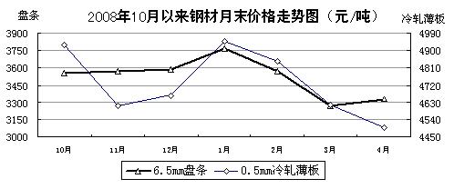 鋼鐵行業整體處於震蕩調整之中。一季度全球粗鋼產量同比下降22.8%,而我國在擴內需政策拉動下,市場供需狀況有所改善,前四個月粗鋼產量17067萬噸,同比基本持平,3、4兩個月日均產量均維持在145萬噸/tian。changcaizengchangjiaokuai,bancaixiangduipiruan。shouguojishichangjiagedafuxiahuaheguoneishichanggongdayuqiuyingxiang,gangcaijiagezongtichuyudiweibodong,quanxingyezhengtichuzaikuisunzhuangtai。juzhongguogangtiexiehuitongji,4月末,國內市場鋼材綜合價格指數為95.56,低於去年11月份的最低點,近期隨著庫存下降、需求增加,國內鋼材市場價格也走出了連續10周的下跌局麵,到5月15日已連續三周保持回升態勢。1-4月,72家大中型生產企業盈虧相抵淨虧損51.8億元,其中4月份淨虧損15億元,虧損麵近四成。