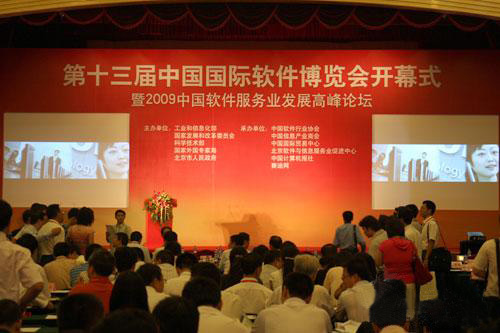 由工業和信息化部、國家發展改革委、科技部、國家外國專家局和北京市政府聯合主辦的第十三屆軟博會在北京展覽館開幕。開幕式由工信部軟件服務業司司長趙小凡主持,李毅中、科技部副部長杜占元、北京市副市長苟仲文、國家發改委高新司副司長顧大偉、國家外國專家局副局長李兵等領導出席開幕式。