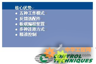 Control Techniques (簡稱CT) 是艾默生工業自動化的下屬公司。我們的專項是驅動器的設計,生產和工程應用,並提供技術支持和售後服務.我們的目標是確保客戶在使用了CT優良可靠的產品後, 能降低生產成本,提高生產效率.