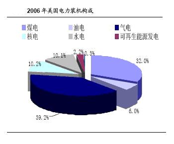 據統計,全世界電力供應主要來源還是煤炭,占40%,另外還有燃氣發電(20%)、水力發電(15%)、石油發電(7%),核電供應隻占總量的16%,至於其他如太陽能、風能、潮汐能等可再生能源發電量還不到2%。美國的裝機構成(見圖2)看,煤電約占1/3,氣電占比略高於煤電,其次是核電和水電,約各占1/10;日本的情況是,油電、氣電、核電占比相當,各約20%,其次是煤電與水電;俄羅斯和印度也是以火電為主,德國是可再生能源發電占比最高的國家,占10%以上;法國核電占比50%以上;巴西水電占65%。