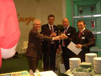 PI組織慶祝赫優訊率先獲得PROFINET IRT設備證書,從左至右依次是:Dr. Peter Wenzel,Xaver Schmidt,André Loburg與赫優訊全球總裁Hans-Jürgen Hilscher