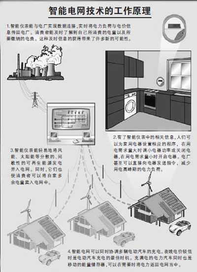 許多科學家相信,解決這些問題的方法是將計算機應用於電網之中,將數字傳感器、遙控裝置等加入現有的電力傳輸及分配係統會使電網變得更加智能、綠色、高效。而且這樣的“智能電網”能更加及時、透明地反應電網狀況。此外,“智能電網”還(hai)有(you)更(geng)多(duo)的(de)優(you)勢(shi)。例(li)如(ru),它(ta)能(neng)處(chu)理(li)可(ke)再(zai)生(sheng)能(neng)源(yuan)所(suo)發(fa)電(dian)力(li),能(neng)協(xie)調(tiao)電(dian)力(li)汽(qi)車(che)充(chong)電(dian),能(neng)為(wei)消(xiao)費(fei)者(zhe)提(ti)供(gong)電(dian)力(li)使(shi)用(yong)情(qing)況(kuang),也(ye)能(neng)讓(rang)發(fa)電(dian)廠(chang)更(geng)有(you)效(xiao)地(di)監(jian)控(kong)電(dian)網(wang)。而(er)這(zhe)些(xie)優(you)勢(shi)都(dou)能(neng)幫(bang)助(zhu)電(dian)廠(chang)減(jian)排(pai)。科(ke)學(xue)家(jia)相(xiang)信(xin),智(zhi)能(neng)電(dian)網(wang)能(neng)徹(che)底(di)改(gai)變(bian)現(xian)有(you)電(dian)網(wang)的(de)工(gong)作(zuo)模(mo)式(shi)。
