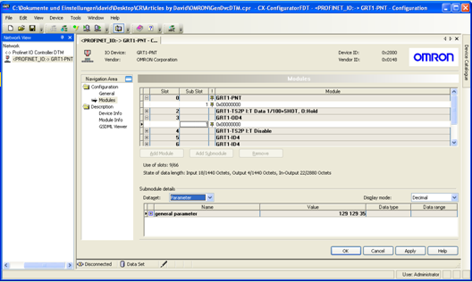 目前,德國赫優訊為歐姆龍公司定製的Generic PROFINET IO設備DTM,該DTM遵循了FDT組織定義的DTM用戶接口類型指南,因此能夠很好的集成在歐姆龍公司的FDT環境中。能夠實現在歐姆龍的CX-ConfiguratorFDT環境中,PROFINET IO Controller DTM訪問和管理來自不同製造商的幾乎所有的PROFINET IO從站。