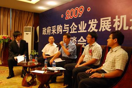 2009年7月15日,國內特種計算機企業研祥集團率先召開座談會,邀請了發改委、財政部、工信部等多位國家部委領導、經濟學家、行業專家、企業代表等專業人士,一起針對“政府采購與企業發展機遇”這一話題進行討論。