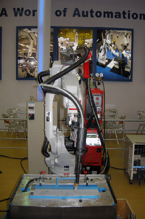 該機器人焊接係統,由EA1400N機器人配備MOTOWELD-EH500大功率焊接電源,進行厚板的焊接演示。焊接過程采用多層焊方式,焊縫熔透性好、成形規整。該係統可滿足各種厚板焊接的工藝要求。水冷裝置和清槍剪絲機構保證了焊接的優質可靠性。