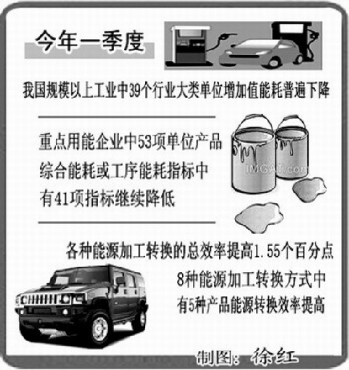 能耗普遍下降,能源轉換效率提高,今年一季度我國工業節能減排步伐進一步加快。