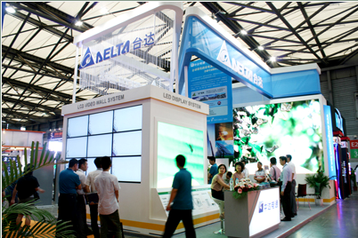 中達LED顯示產品鮮麗的色彩、高亮度的顯示、綠色環保的性能吸引了來自國內外觀眾的駐足。為了更好地展示當今LED的前沿技術和先進產品,工程師以中達LED為例,進行了詳細的解說和介紹:中達LED采用了標準的模塊化生產,相比於業界其他廠商,其產品具有更強的通用性、互換性和一致性。另外,一貫堅持"環保、節能、愛地球"的中達電通,在產品設計之初就致力於為客戶帶去更加高效節能的產品,其獨有的電源控製係統可使電源有效率高達90%以上,功耗可降低25%左右,能更好的響應國家節能減排的號召。同時,針對戶外LED,中達電通更是為客戶考慮周到,特別設計了32段亮度控製功能,隨著戶外環境光線變化,可自動調節整屏亮度,從而提升節能效果。