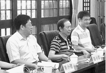 許嘉璐(右)和他的學生陳小盟(左)。中為河北省委常委、唐山市委書記趙勇(時任團中央書記處書記)。