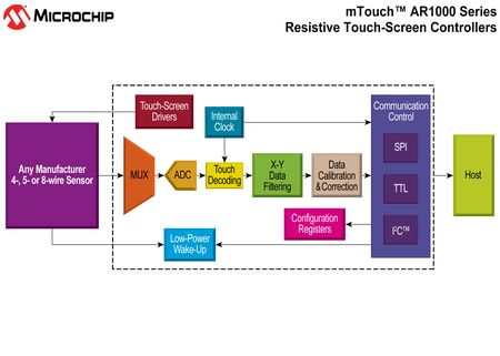AR1000控製器推出之前,實現電阻式觸摸用戶界麵的嵌入式係統隻限於基本的模數轉換器(ADC),而且需要大規模開發和集成。AR1000控製器通過提供先進的專有觸摸屏解碼算法消除了這類試錯工程,使應用得到完全處理的可靠觸摸坐標。AR1000控製器融合了Microchip出色的單片機製造能力與最近收購的Hampshire公司在設計電阻式觸摸屏控製器方麵逾15年的豐富經驗,使得嵌入式電阻式觸摸設計的產品開發風險減小、係統總成本降低及上市時間縮短。由於成本低,能夠利用手指、透過手套或手寫筆輸入,以及總體上便於製造和集成,電阻式觸摸技術深受歡迎,適用的應用涵蓋手機、工業自動化、零售銷售點終端、博彩/娛樂設施和汽車導航係統。