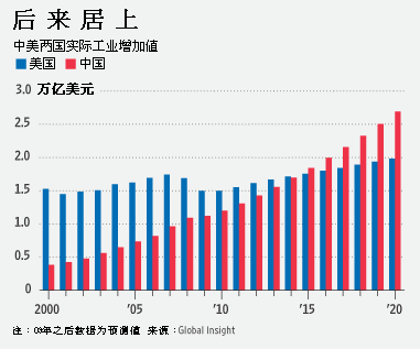兩年前,GlobalInsight預計中國會在2020年之前超過美國成為全球最大製造業國家。去年該機構又將這一時間提前到了2016年或2017年。
