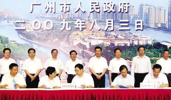 中共中央政治局委員、廣東省委書記汪洋,國務院國資委主任李榮融,廣東省委副書記、省長黃華華,國家教育部副部長陳希,鐵道部原副部長王兆成,省委常委、常務副省長黃龍雲,省委常委、廣州市委書記朱小丹,省委常委、省委秘書長徐少華,廣州市委副書記、市長張廣寧出席了簽約活動。