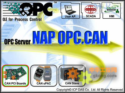OPC是一種利用微軟的COM/DCOM技術來達成自動化控製的協議,為硬件製造商與軟件開發商提供了一座橋梁。泓格科技除了目前已經發行的NAPOPC Server 之外,也另外針對CAN bus係列產品提供了NAPOPC.CAN DA Server軟件。