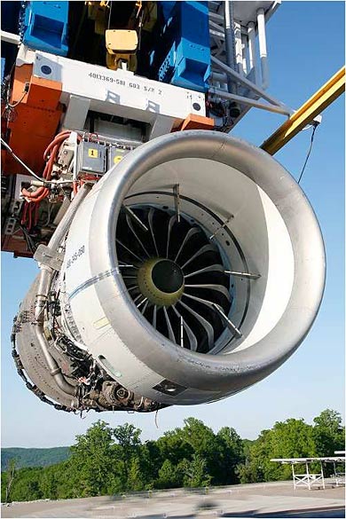 美國通用電氣公司和法國斯奈克瑪公司的合資公司CFM公司製造的LEAP-X型號發動機,被稱為第一種第三代民用航空渦扇發動機。這是2009年6月12日在GE集團位於俄亥俄州Evendale工廠的高空試驗台上,LEAP-X發動機的核心機首次點火的圖片。這裏將在整個飛行包線內檢驗渦輪和燃燒室的性能。該核心機由8級壓氣機與單級渦輪組成,CFM公司說:“我們希望核心機能有更高的熱效率,我們想要提高核心機的溫度從而提高熱效率,以此確保渦輪葉片的效率和耐久性。”