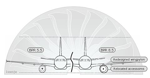 在有助於提高燃效的高涵道比方麵,力爭從目前的5.5左右提高至9以上,這是一個驚人的數字。