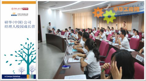 研(yan)華(hua)公(gong)司(si)校(xiao)園(yuan)成(cheng)長(chang)營(ying)活(huo)動(dong),已(yi)成(cheng)為(wei)研(yan)華(hua)公(gong)司(si)跨(kua)界(jie)交(jiao)流(liu)學(xue)習(xi)的(de)新(xin)模(mo)式(shi),結(jie)緣(yuan)校(xiao)園(yuan),收(shou)獲(huo)知(zhi)識(shi),分(fen)享(xiang)與(yu)傳(chuan)承(cheng)並(bing)舉(ju),無(wu)論(lun)是(shi)致(zhi)力(li)於(yu)人(ren)才(cai)培(pei)育(yu)抑(yi)或(huo)積(ji)極(ji)構(gou)建(jian)學(xue)習(xi)型(xing)組(zu)織(zhi)的(de)積(ji)極(ji)行(xing)動(dong),校(xiao)園(yuan)圓(yuan)夢(meng)活(huo)動(dong)將(jiang)持(chi)續(xu)進(jin)行(xing)。2008年“研華(中國)公司經理人校園成長營”攜手北京航空航天大學經濟管理學院,每年舉辦一次。