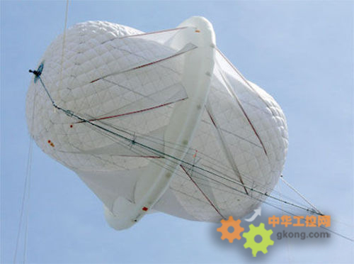 空氣轉動渦輪的外形酷似飛船,是一種位於高緯度的風力發電機,其內部充滿了氦氣所以可以保持漂浮狀態。最高可以栓在1000英尺的空中。
