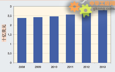 盡管目前總體經濟形勢低迷,但根據ARC Advisory公司的市場調查顯示,從中期角度來看,壓力傳感器的國際市場還是會有適度的增長。這一結論是根據企業設備資產管理信息係統(PAM)不斷增加的需求信息和安全保護需求而得出的。在今後五年內,期望的年增長率(CAGR)大約為3.3%。2008年度,這一市場的銷售額達到了23.8億美元,據預測至2013年時將增加到近28億美元。