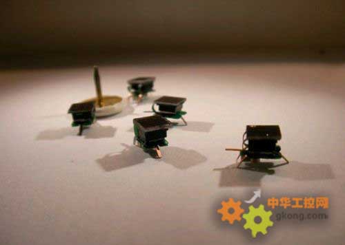 這zhe些xie微wei型xing機ji器qi人ren僅jin用yong一yi塊kuai電dian路lu板ban就jiu實shi現xian了le收shou集ji和he傳chuan回hui數shu據ju的de功gong能neng,相xiang當dang具ju有you革ge命ming性xing。從cong前qian單dan芯xin片pian的de機ji器qi人ren的de開kai發fa在zai設she計ji和he製zhi造zao是shi一yi種zhong重zhong大da的de挑tiao戰zhan,部bu分fen上shang是shi由you於yu使shi用yong焊han接jie方fang法fa來lai裝zhuang配pei。而er這zhe些xie新xin的de微wei型xing機ji器qi人ren應ying用yong了le表biao麵mian貼tie裝zhuang技ji術shu,用yong可ke導dao電dian的de粘zhan合he劑ji將jiang配pei件jian粘zhan合he在zai可ke彎wan曲qu的de雙shuang麵mian印yin刷shua電dian路lu板ban上shang。因yin此ci可ke以yi將jiang電dian路lu折zhe疊die到dao三san分fen之zhi一yi大da小xiao,並bing纏chan在zai特te殊shu應ying用yong集ji成cheng電dian路lu(application-specific integrated circuit,ASIC)表麵。