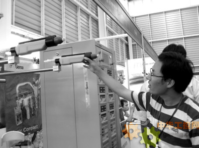 咦?這是什麼?三杆“機槍”並排,上下移動,似乎在“掃射”。難道製博會上還能展示現代武器?趕緊問問廠家吧。原來,這是一種現代噴塗設備,采用了21世紀最先進的靜電粉末噴塗技術,可以在很多東西的表麵噴塗新的顏色。