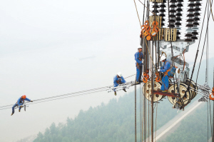 特高壓 輸電工程首次成功跨越長江。
