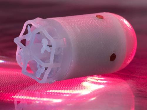 後麵小螺旋槳作為驅使力,這台相機膠囊機器人可以用來探索人體的消化係統。病人把它“吃”下去以後,它將在人體內“遊”視需探索的領域。(圖:皇家外科學院/意大利比薩聖安娜)