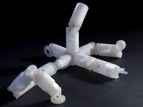 阿瑞斯機器人——用於重組內鏡腔內手術——可吞食或零散的插入體內,然後在人體內進行自由組裝。其目的是盡量減少或避免外科手術創口。一個病人最多能吞下多達15個機器人模塊,這些模塊將前往體內受病害侵襲的地點然後重組為一個完整的裝置在體內進行外科手術。(圖:英國皇家外科醫生學院/意大利比薩聖安娜)
