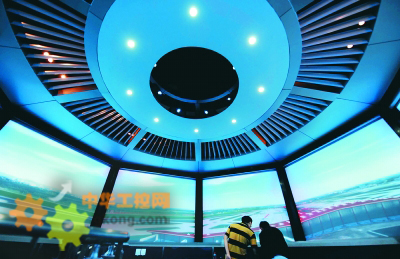 編者語:9月13日,中國科技館新館向媒體開放,新館展覽等展教活動場地麵積可達6萬平方米,是全國最大的科普教育基地。新館將於16日正式開館。圖為由8麵大屏幕組成的模擬機場塔台展廳。