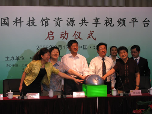 9月13日上午九時,全國科技館資源共享視頻平台在中國科技館正式開通。中國科協榮譽委員、中國工程院院士胡啟恒,中國科協書記處書記馮長根、程東紅,中國科技館館長徐廷豪,副館長辛兵共同開啟平台。