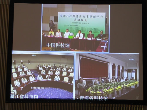 當天的開通儀式也通過這套共享視頻平台與23家地方科技館進行了互動直播。中國科技館館長徐廷豪表示,以後會充分發揮視頻平台快捷、便利、互動的優勢,多開展館際交流和遠程科普等活動,使科普資源整合共享,使其服務於“體驗科學,啟迪創新;服務大眾,促進和諧”的建館宗旨。