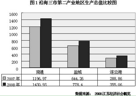 產業布局的“雙轉移”,加快了江蘇沿海產業帶的建設。2008年,南通、連雲港、鹽城三市規模以上工業實現增加值分別比上年增加17%、18.1%和18.1%,增幅高於全省的14.2%、高於蘇南的12.2%和蘇中的16.9%。
