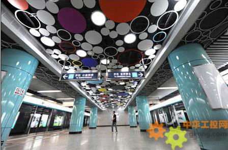 不光是列車內,地鐵4號線上每個站廳也是很現代化的。比如站廳內懸掛的五屏環,這種從香港“引進”的多媒體由5個42寸液晶顯示屏組成,能夠播放特殊的視頻效果,既可作為一個整體聯動,也可獨立放映,給乘客帶來不同於普通顯示屏的炫動感覺。