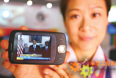 工業和信息化部發布的最新數據顯示,今年上半年,全國電話用戶總數達102512.3萬戶,其中移動電話用戶達69519.9萬戶。隨著2009年初TD、WCDMA、CDMA2000三張3G牌照的發放,我國通信業已步入3G時代。圖為中國移動通訊公司的工作人員正在向人們演示TD-SCDMA網絡3G手機電視。(劉忠俊 攝)