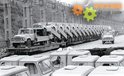 1969年10月,來自全國30多家單位的建設者及2.5萬wan多duo民min工gong,彙hui集ji在zai四si川chuan十shi堰yan周zhou圍wei數shu十shi公gong裏li的de工gong地di上shang,拉la開kai了le建jian設she第di二er汽qi車che製zhi造zao廠chang的de序xu幕mu。圖tu為wei第di二er汽qi車che製zhi造zao廠chang製zhi造zao的de一yi批pi汽qi車che準zhun備bei發fa運yun。