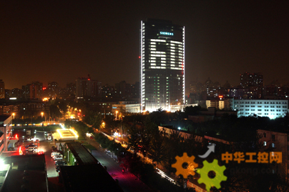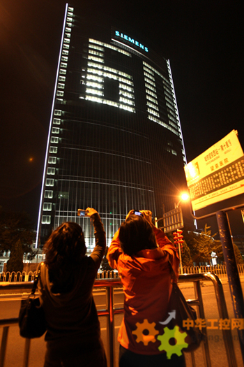 西門子在公司總部大樓的玻璃幕牆上打出明亮的”60”字樣慶祝建國六十周年