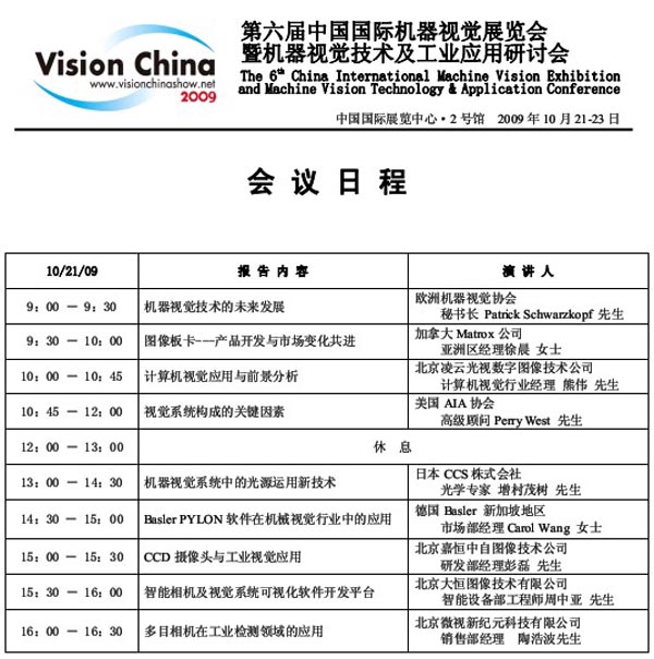 目前,會議已做好具體日程安排,如有疑問敬請垂詢010-62650592/84600350,“第六屆中國國際機器視覺展覽會暨研討會”歡迎您的到來。