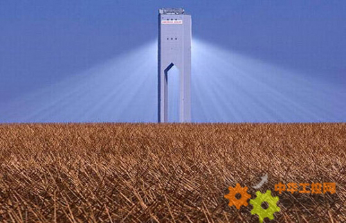 高塔下麵傾斜的鏡板不斷接受著陽光。