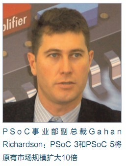 “PSoC 3和PSoC 5架構擴充了PSoC原有的可編程嵌入式係統設計平台,將PSoC的應用市場規模擴大10倍並增至150億美元,涵蓋8、16、32位應用和精確模擬市場。”Cypress PSoC事業部副總裁Gahan Richardson說,“PSoC 3 和 PSoC 5能夠在諸如馬達控製、智能供電和電源管理、人機界麵(如CapSense觸摸感應)、LCD節段顯示、圖形控製,以及音頻/語音處理、通訊協議等應用中大顯身手。這些新的性能大大地拓展了PSoC的應用市場範圍,包括工業、醫療、汽車、通訊和消費電子設備等等。可以說‘PsoC is everywhere’,即PSoC可以用於任何電子產品。”