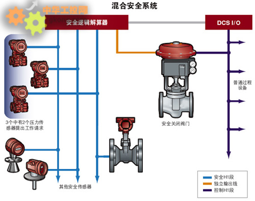 在zai同tong一yi個ge現xian場chang總zong線xian段duan內nei連lian接jie安an全quan和he普pu通tong控kong製zhi儀yi表biao是shi完wan全quan可ke行xing的de,當dang然ran,用yong戶hu可ke能neng更geng希xi望wang將jiang兩liang者zhe隔ge離li開kai來lai。而er且qie,安an全quan設she備bei不bu能neng向xiang控kong製zhi係xi統tong發fa送song數shu據ju是shi沒mei有you理li由you的de,一yi台tai壓ya力li或huo者zhe液ye位wei傳chuan感gan器qi作zuo為wei安an全quan設she備bei也ye可ke以yi通tong過guo在zai安an全quan邏luo輯ji解jie算suan器qi和heDCS之間的交互將過程變量傳送至控製係統。