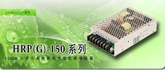 為了因應綠色節能的世界趨勢以及符合未來市場對低耗能產品之需求,明緯推出了新一代小型化高效率低耗能係列產品~HRP(G)-150。本係列產品為150W小型化交流/直流機殼型電源供應器(AC/DC enclose type power supply),是明緯目前最高檔次5年保固之產品,設計上內建主動式功率因子矯正(PFC)功能來達成歐盟諧波電流幹擾限製(EN61000-3-2)。相較於第一代內建PFC機殼型機種SP-150係列,HRP(G)-150係列外殼尺寸縮小了40.5%,工作效率平均提升了5~13%,保固年限更由3年延長至5年。