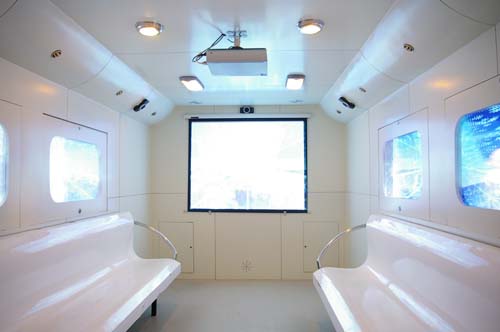 駕駛戰機被擊中,你將如何逃生?在國防科技展廳,你將可體驗駕駛航母艦載機升空戰鬥。據了解,該飛機是按蘇27式飛機1∶1仿製。起飛、左右翻滾、瞄準、射擊、登陸,你可駕駛飛機做出各種動作並參與戰鬥。據稱,飛機被敵人擊中的幾率為40%,一旦被擊中,你隻能選擇“逃生”——此時,你會被從坐椅上彈起2米多高!有趣的是,登機前你還得稱體重,這是為了根據你的體重調試“彈射”設備。