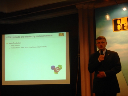 來自貝加萊總部國際合作經理Franz Enhuber、過程/HMI/軟件研發經理Martin Reichinger、Raimund Ruf、Werner Paulinr等分別介紹了貝加萊的產品(控製係統、工業計算機、通用運動控製、統一軟件平台Automation Studio)。軟件研發經理Werner Paulin的中文開場白贏得了大家的掌聲,更為精彩的是它對於Automation Studio這一平台如何在整個產品生命周期過程中的應用展開的論述獲得了場上嘉賓的陣陣喝彩,Automation Studio不僅僅是開發工具,而是一個融合了配置、項目管理、團隊協作、編程、調試、診斷維護的一體化、麵向所有對象的平台係統,使得它能夠成為持續創新產品設計的卓越自動化軟件平台;貝加萊OEM技術經理陳誌平的演講,將方案標準化,參數設置而非編程、降低調試周期、縮短Time to Market這些新的概念與B&R已經完成的各種實際應用結合起來極大地吸引了客戶,這將為其創造更具競爭力的係統設計,這一理念體現了B&R在OEM機械設計領域裏的領導者地位;來自國內某煙草行業的葉磊先生則以講故事的方式生動的描繪了過去數年裏與B&R合作經曆,如何從不了解到深入合作的過程,煙草機械的控製需求極其苛刻,然而,B&R強大性能使得他們在煙草機械項目的競爭中獲得競爭優勢;過程自動化領域的李其奇先生站在客觀的角度介紹了在北方地區熱網中B&R係統的應用實例,開放、靈活性以及良好的技術支持使得他們在獲取熱網控製係統競爭中處於優勢地位。