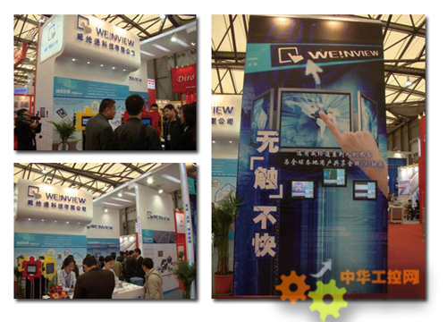 威綸通科技在E1館以光地特裝形式參與了這次展會。憑借聲、形、實物並行的參展風格,演示與嚐試交互的產品展示以及親切友好的接洽,威綸通攜旗下全係列金牌HMI產品圓滿完成了演出。相比09年已參加過的展會,本次威綸通科技以藍白兩色為表現基調,對之前的文字類畫麵進行了適當精簡,同時推出以“無觸不快”為主題標語的迎賓板,配合24台樣機的現場聲、光演示,帶來簡潔明快的視覺效果,為觀眾了解產品的出色品質提供直觀快捷的有效渠道。